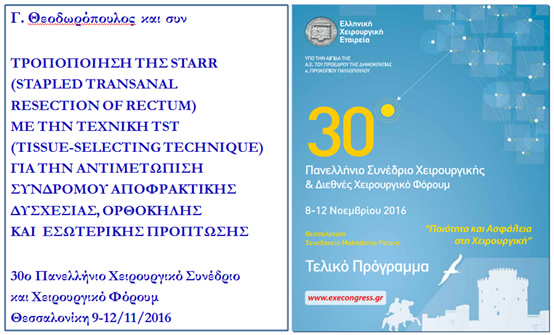 H τεχνική παρουσιάστηκε στο 30ο Πανελλήνιο Χειρουργικό Συνέδριο και Χειρουργικό Φόρουμ (Θεσσαλονίκη 9-12/11/2016)