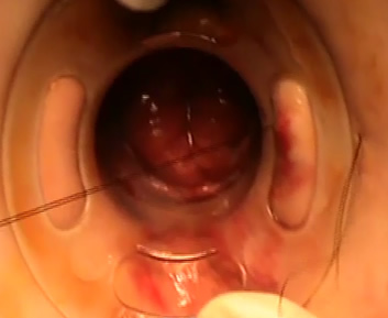 Τοποθετούνται 8 τριπλές ραφές έλξης προσθίως, οπισθίως και πλαγίως συλλαμβάνοντας περιμετρικά το προπίπτον τμήμα του ορθού